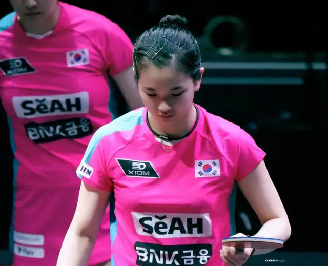 金娜英接发球反手抢攻将比分追到7比9,陈熠继续正手压制对手11比7扳回一局。金娜英这局比赛想在反手环节跟对方打相持拼速度就很难了,陈熠在中路的回球上频繁正手进攻,金娜英完全被压制住了,很难打出快速进攻,就被对方的正手给一板得分。